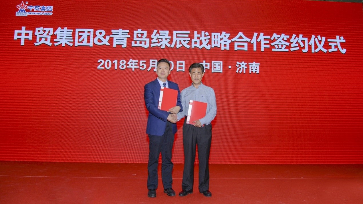 2018年5月20日中贸集团与青岛绿辰集团在济南国际会展中心签订战略合作协议,双方高层领导就下一步的合作进行了深入的交流和探讨,中贸集团将利用现有所有资源积极推广宣传与绿辰集团合作进口商的产品,绿辰集团将带领绿辰的客户全面参展中贸集团在国内各大城市举办的糖酒会,绿辰集团董事长穆文斌先生表示将对与中贸集团合作的进口商实行免除30天的仓储费用,提供免费的商品推广优惠服务。