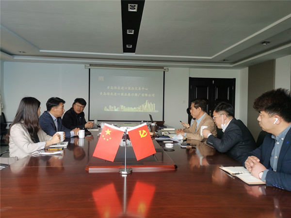 2022年4月29日,韩国农水产食品流通公社(简称aT)青岛代表处首席代表李相吉一行赴我司参观考察,洽谈合作事宜。公司总经理穆文斌、国际贸易部经理刘帅、绿辰交易部经理王冲等热情接待了李相吉代表一行。