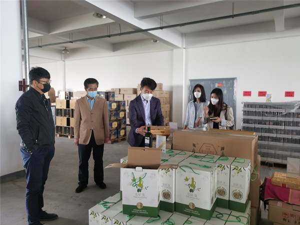 当天,李相吉代表一行先后参观了公司30000平米标准的保税食品备案仓库(包括进口葡萄酒仓、保税电商专用分拨仓、进口日化用品仓、进口吉他专仓)及仓储式商品展示大厅,随后双方进行了座谈交流。