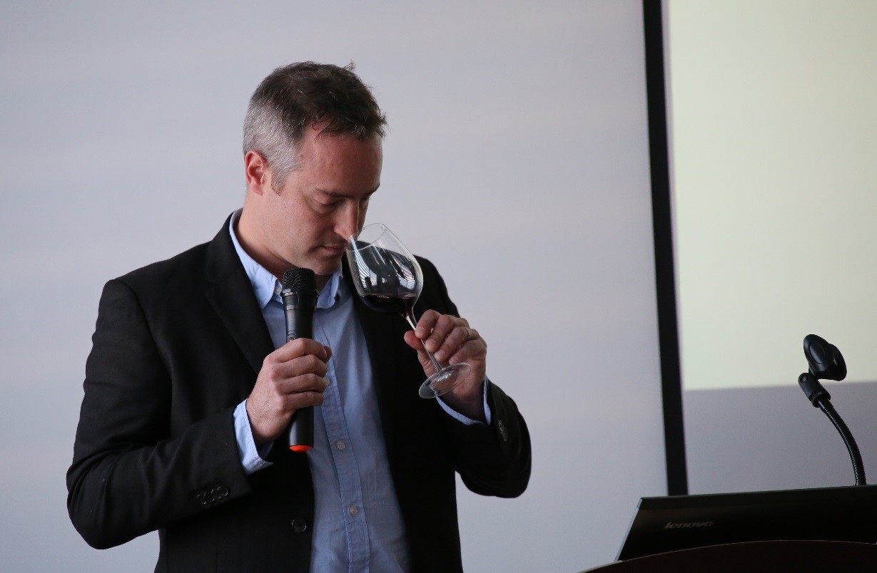 接着,法国拉蒙首席酿酒师Yannick介绍了法国拉蒙酒业集团成立于2010年,在法国拥有超过25座闻名遐迩的百年酒庄,种植面积约600公顷,葡萄酒品种约30多种,年产量约400万瓶,酒庄酒100%AOC级,集团拥有自有国家级酿酒师5人,此次品鉴的会酿酒师yannick是法国拉蒙首席酿酒师,拥有15年酿酒经验,将带领大家走进法国,走进拉蒙。