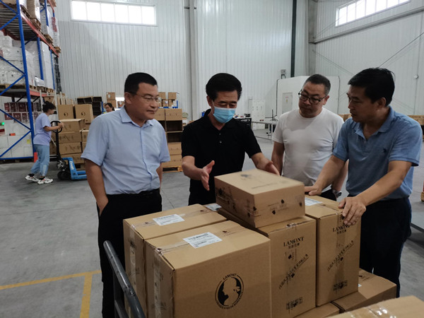 2022年9月15日,黄岛海关副关长王爱民、青岛自贸片区管委副主任刘元在青岛西海岸综合保税区服务中心党委书记牟军伟、绿辰公司总经理穆文斌陪同下莅临青岛绿辰进口商品展示推广有限公司调研考察,围绕如何解决企业当前遇到的困难,及对未来的发展深入沟通和交流。