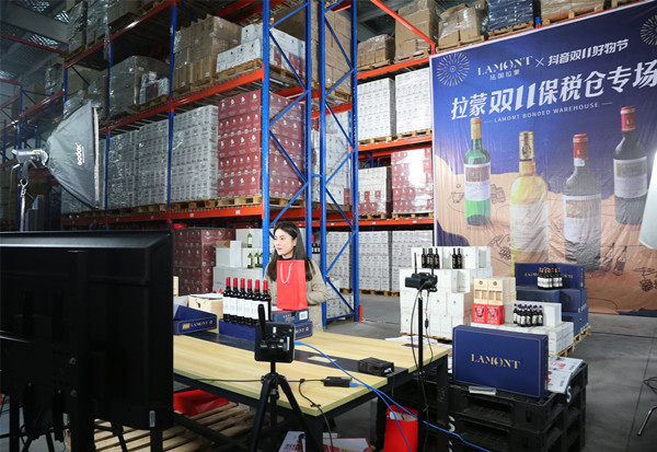 揭牌仪式结束后,拉蒙酒业电商团队在绿辰保税电商分拨基地开启了首场“双11”抖音直播,现场的领导及嘉宾进行了参观并交流。